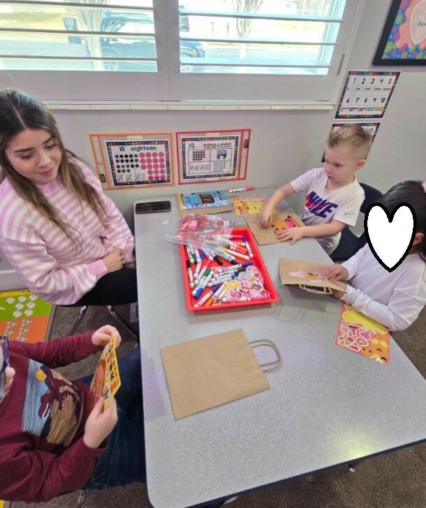 Our class party was so fun! We had some wonderful moms come in and run a few centers. One center the kiddos got to decorate cupcakes. They were delicious. Another center they got to play Valentine Don't Eat Pete. It was so fun to see their excitement when it was their turn. They also got to decorate their own Valentine's bags to hold their Valentines. They got to choose from a variety a Valentine themed stickers. Peeling off the stickers is great for their fine motor development. Finally they painted a cute valentine that said, "I love to you pieces." I used a hot glue gun to separate the hearts into pieces. Then the kiddos got to use watercolors to paint the different pieces. We ended our party by passing out our Valentines. It was such a fun day!