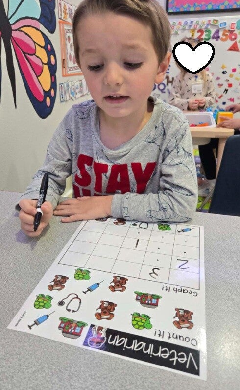 Our letter focus was on Nn and Ff. For math, we continue to identify numbers and practice counting. We did a fun math activity where the kiddos got to graph different community helper jobs (i.e. vets, scientists, lifeguards, doctors, etc.)